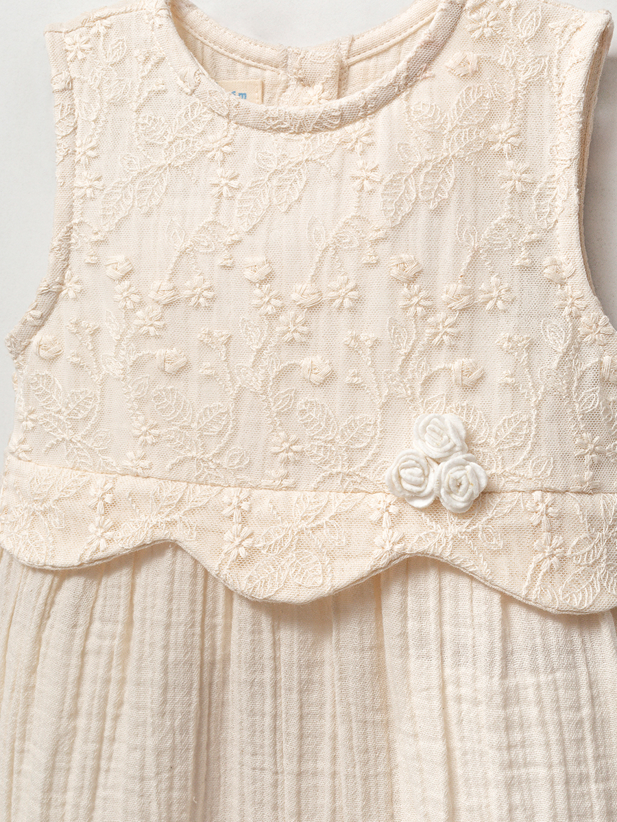 Bestickter Musselin-Overall: Hergestellt aus atmungsaktivem 0 Baumwollmusselin. Elegante Blumenstickereien und Spitzendetails im Brustbereich verleihen dem Windelhöschen einen Vintage-Look. Druckknöpfe im Schritt erleichtern das Windelwechseln.