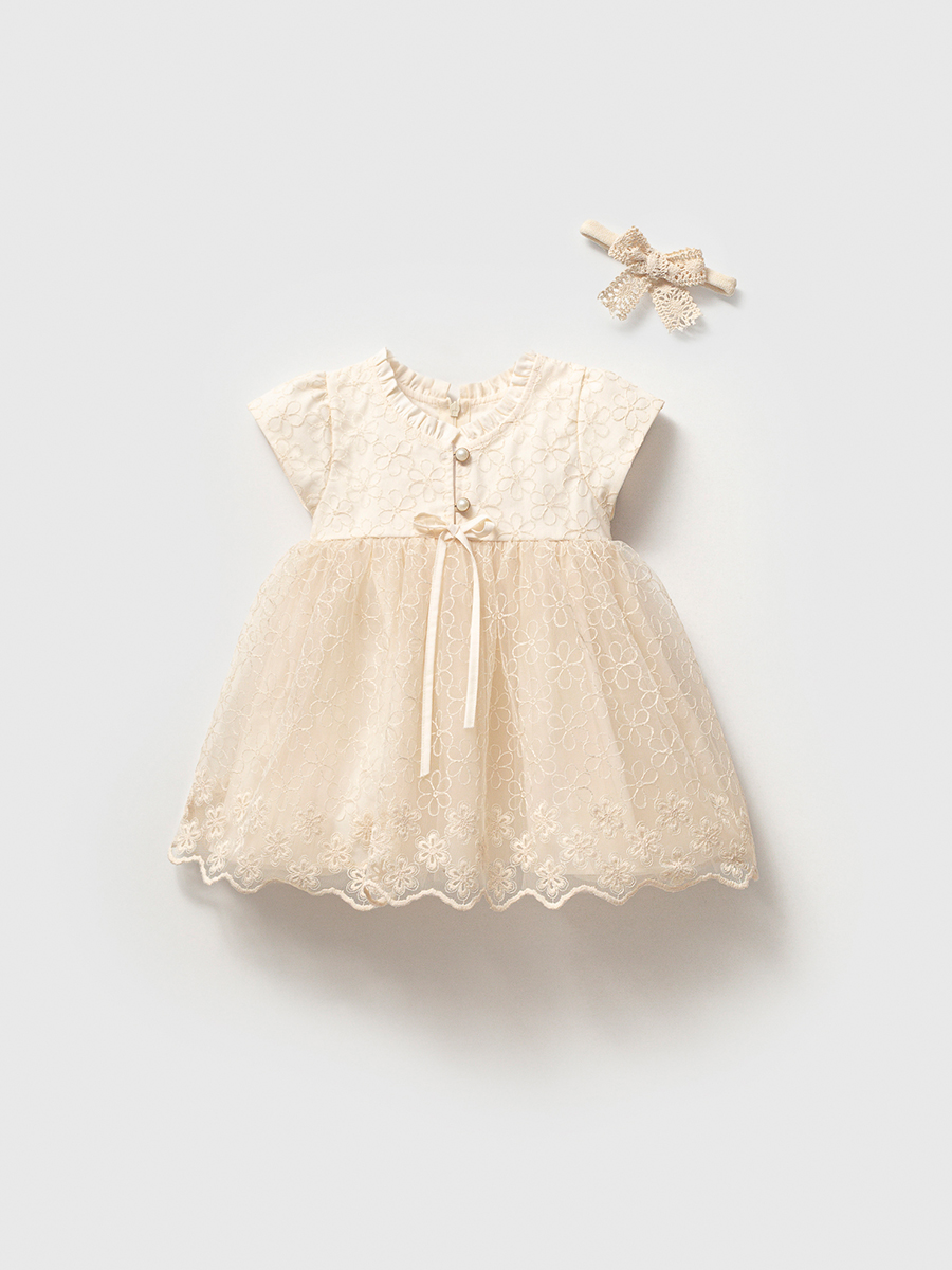 Baby Girl Cream Lace Birthday and Christening Dress – Free Bandana Included 9-24 Months