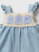 Богемный штрих в гардеробе вашего малыша: джинсовый комбинезон с кружевной вышивкой.