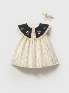 От прогулок в парке до семейных визитов — это платье обеспечит вашему малышу стильный и комфортный вид в любой ситуации. Нежный кремовый цвет делает его подходящим для любого сезона и стиля.