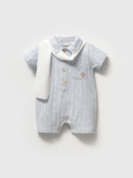 Детский полосатый льняной комбинезон для мальчика – летний комбинезон с шарфом, 9-24 месяца.