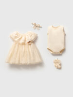 Bebeğinizin en özel günlerinde (mevlüt, doğum günü, bayram veya fotoğraf çekimleri) zarafeti ve konforu bir arada sunan bu 4 parça özel tasarım set, Noynoy Baby kalitesiyle hazırlandı. Yumuşacık dokusu ve vintage esintili dantel detaylarıyla bebeğiniz hem çok şık olacak hem de gün boyu rahat edecek.